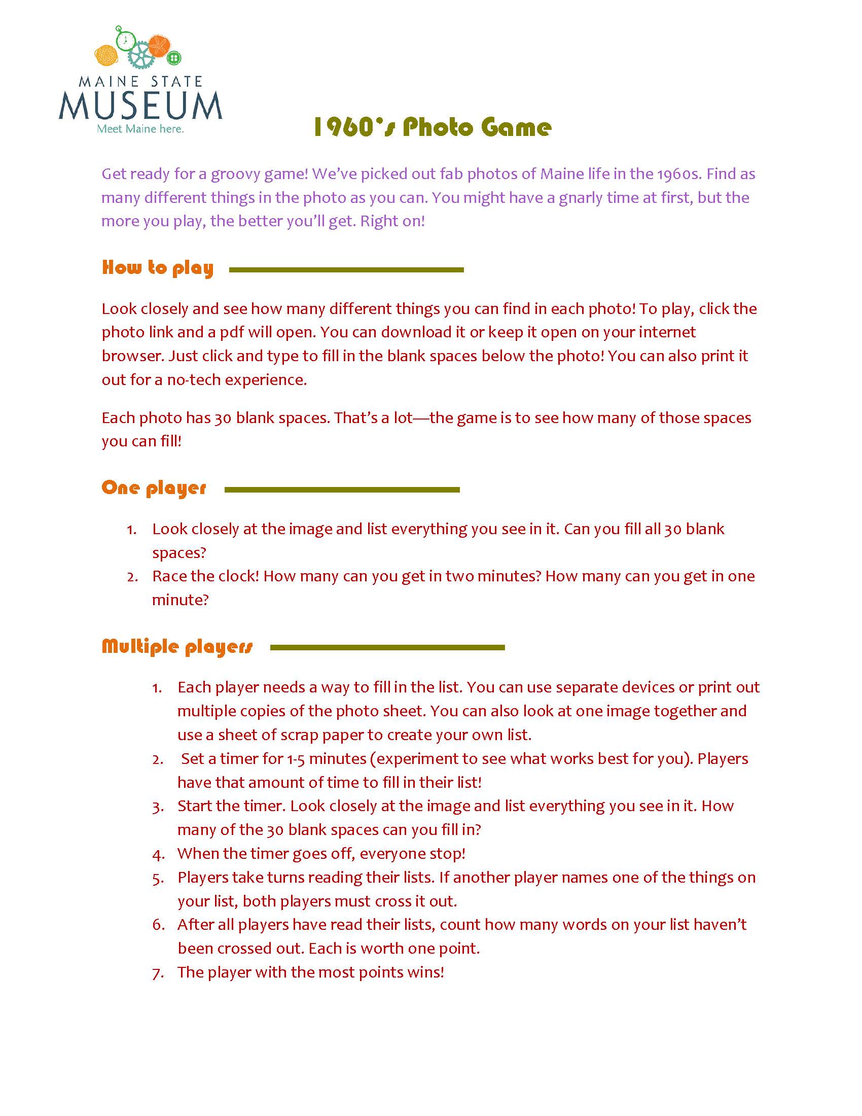 Join us for an online photo hunt using images from Maine in the 1960s! The images are from the collections of the Maine State Museum and the Maine Historical Society.