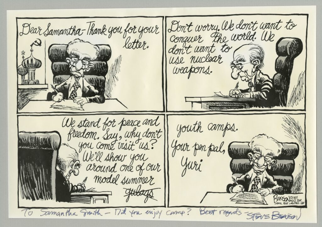 Samantha Smith Political Cartoon by Steven Benson. Maine State Museum Collection, 2010.37.147