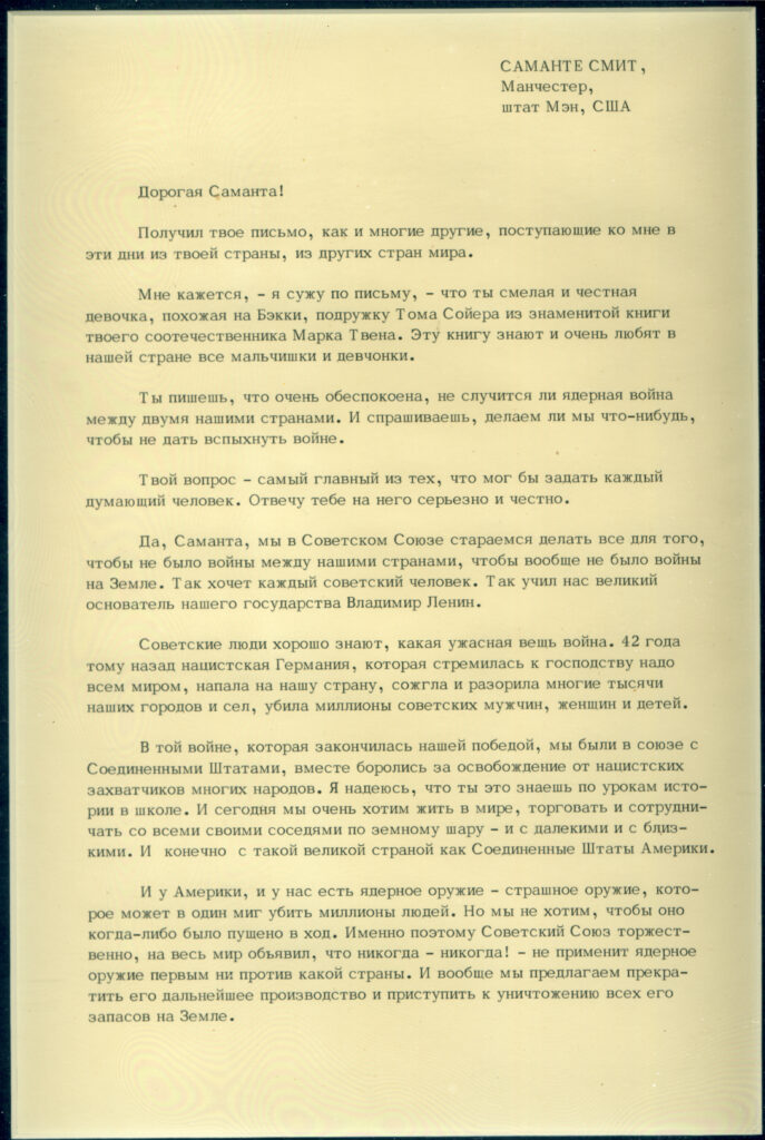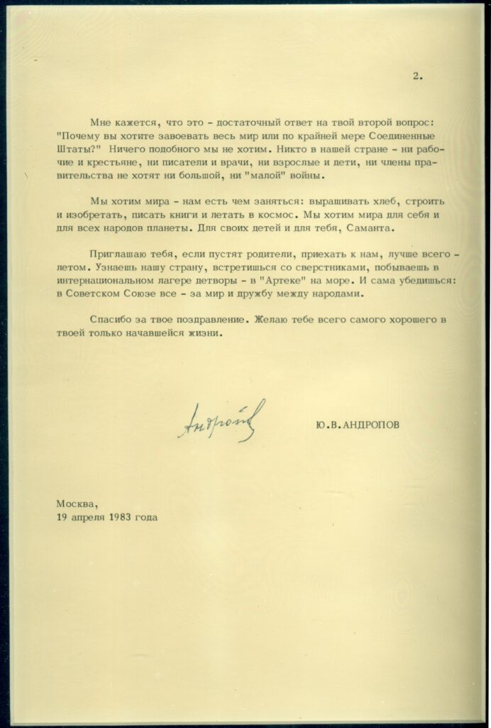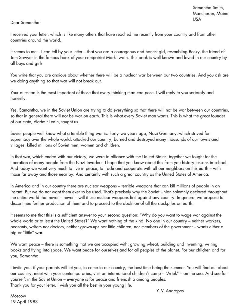 Samantha Smith’s letter to Yuri Andropov