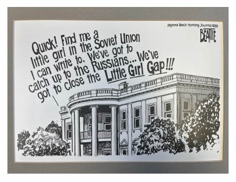 Samantha Smith Political Cartoon by Bruce Beattie. Maine State Museum Collection, 2010.37.107