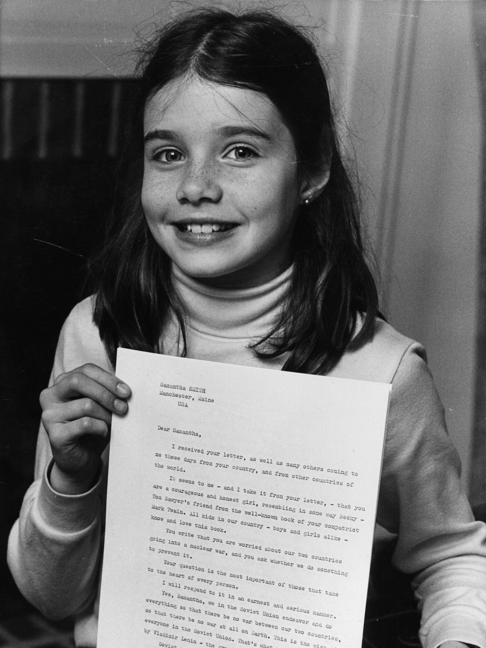Samantha was the girl from Manchester, Maine, who, in 1982, as a ten-year-old, wrote to Soviet leader Yuri Andropov, questioning his commitment to world peace.